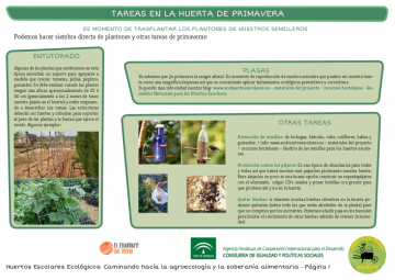 Las temperaturas suben y aunque aún quedan unas semanas para la llegada oficial de la primavera, lo cierto es que el invierno se despide. Planificar las tareas que pueden hacerse en esta época, puede ser muy útil para aprovechar todos los aprendizajes que nos ofrece el huerto en esto últimos meses del curso.
